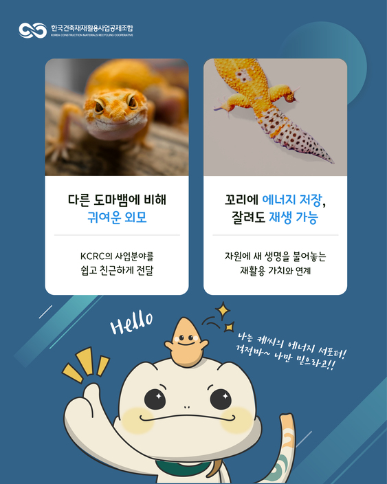 #케씨알씨 #한국건축재재활용사업공제조합 #새로운캐릭터 #등장 #kcrc #자원순환히어로 #레오파드게코 #자원순환히어로